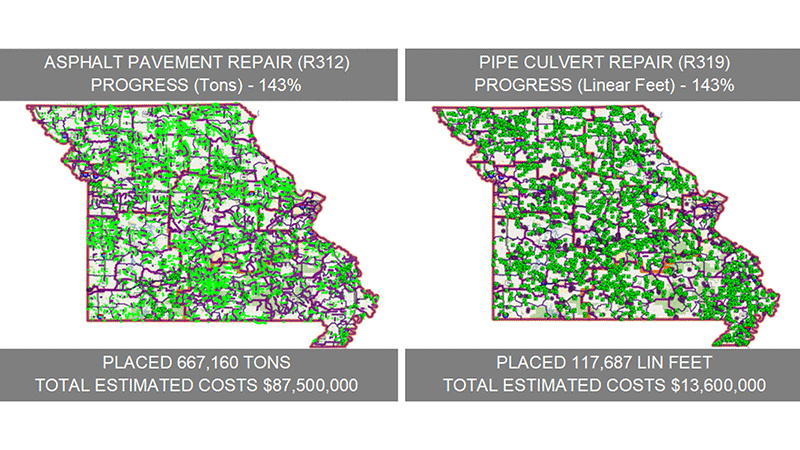 The example visual above from MMS demonstrates work plan progress for asphalt pavement repair and pipe culvert repair for year-to-date calendar year 2025.