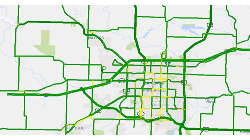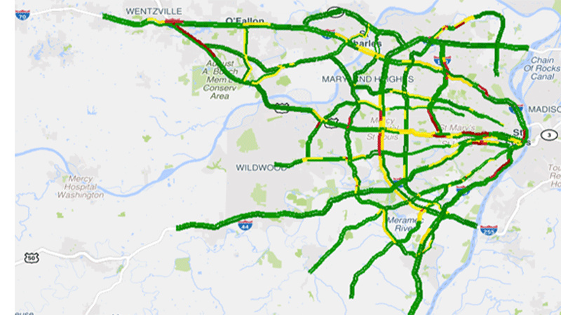 This measure tracks the mobility of significant state routes in St. Louis, Kansas City, Springfield and Columbia.